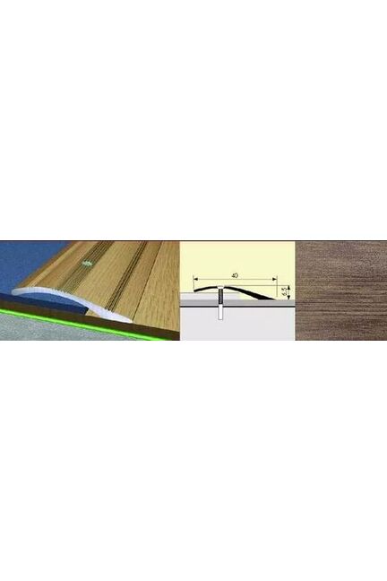 Предназначенный для стыков любых разноуровневых поверхностей с перепадом от 3 до 10мм. Применяется для ламината, керамогранита, керамической плитки, ковролина, деревянных и других поверхностей. Полукруглый алюминиевый порог 40мм для стыков полов, с отделкой под дуб сантана. Защищает края, прост в монтаже, устойчив к износу и влажности.