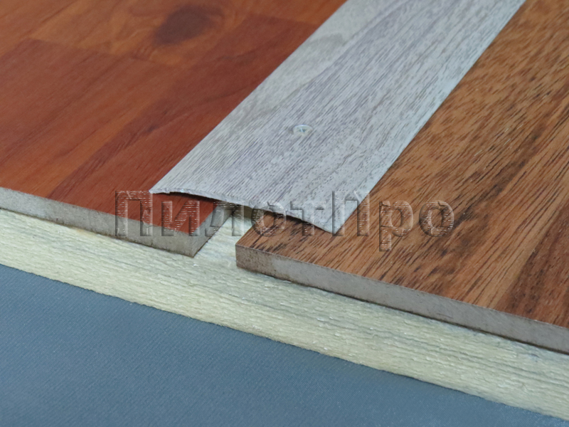 Универсальный алюминиевый порог с декоративным покрытием, шириной 60 мм и длиной 1,8 м, для аккуратного и прочного соединения напольных покрытий.