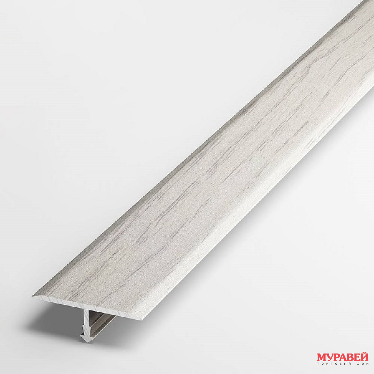 Надёжный Т-образный алюминиевый порог с ламинацией, "Дуб Гамбург", для аккуратных и долговечных стыков напольных покрытий разной высоты.