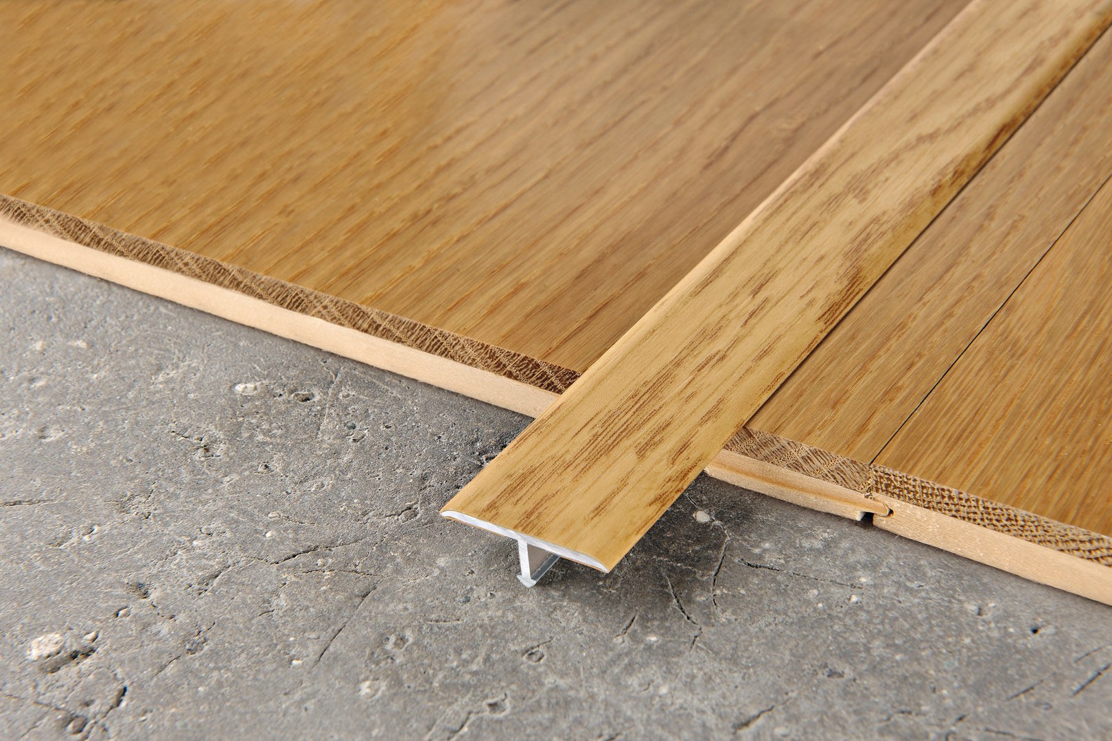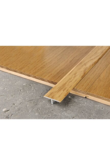 Т-образный алюминиевый порог 23мм*0,9м, ламинированный, цвет "Светлый орех", закрывает стыки разной высоты, устойчив к износу и повреждениям.