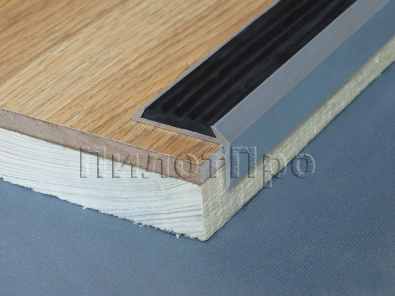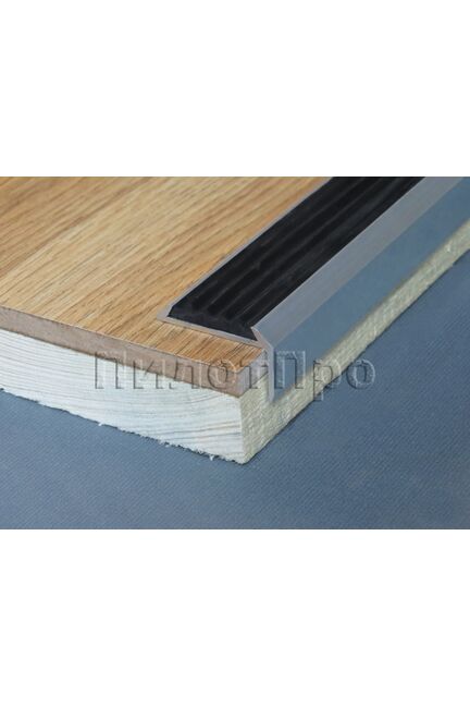 Алюминиевый угловой порог с резиновой вставкой 1,8 м защищает стыки, предотвращает скольжение и обеспечивает аккуратный переход покрытий.