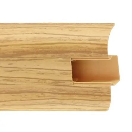 Утонченный и высокий профиль (58 мм) с острыми краями. Благодаря съёмной панели монтаж электрических проводов, покраска стен, оклеивание обоями возможны без демонтажа профилей. Конструкция позволяет монтировать и демонтировать плинтус без использования инструментов. Существует возможность размещения большого количества проводов, в том числе после монтажа. Специальная двухслойная технология: помимо слоя краски, дополнительно покрывается специальным лаком, благодаря чему его покрытие становится однородным, а это дополнительно защищает изделие от разного вида механических повреждений и вредного воздействия лучей УФ. Благодаря эластичному материалу, плинтус идеально прилегает даже к неровностям стен и полов.