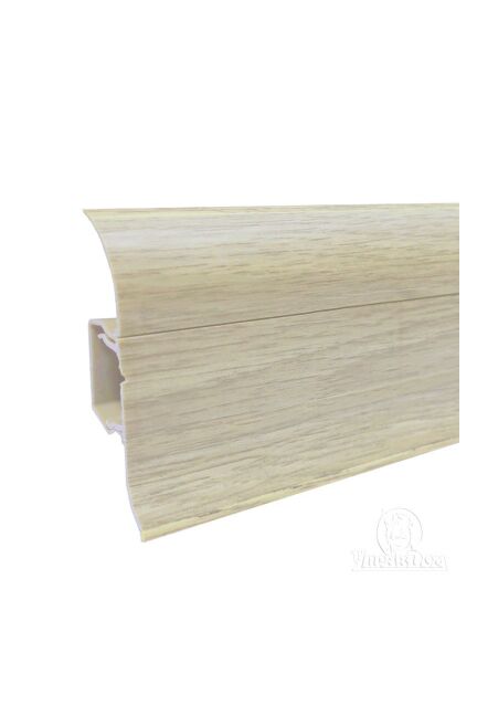Утонченный и высокий профиль (58 мм) с острыми краями. Благодаря съёмной панели монтаж электрических проводов, покраска стен, оклеивание обоями возможны без демонтажа профилей. Конструкция позволяет монтировать и демонтировать плинтус без использования инструментов. Существует возможность размещения большого количества проводов, в том числе после монтажа. Специальная двухслойная технология: помимо слоя краски, дополнительно покрывается специальным лаком, благодаря чему его покрытие становится однородным, а это дополнительно защищает изделие от разного вида механических повреждений и вредного воздействия лучей УФ. Благодаря эластичному материалу, плинтус идеально прилегает даже к неровностям стен и полов.
