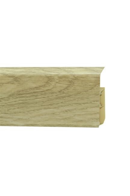 Утонченный и высокий профиль (80 мм) с острыми краями. Благодаря съёмной панели монтаж электрических проводов, покраска стен, оклеивание обоями возможны без демонтажа профилей. Конструкция позволяет монтировать и демонтировать плинтус без использования инструментов. Существует возможность размещения большого количества проводов, в том числе после монтажа. Специальная двухслойная технология: помимо слоя краски, дополнительно покрывается специальным лаком, благодаря чему его покрытие становится однородным, а это дополнительно защищает изделие от разного вида механических повреждений и вредного воздействия лучей УФ. Благодаря эластичному материалу, плинтус идеально прилегает даже к неровностям стен и полов. Заглушки 80 мм, цвет "Дуб Супрема", комплект 2 шт. Защищают края плинтуса, простой монтаж, подчёркивают стиль и завершают оформление пола.