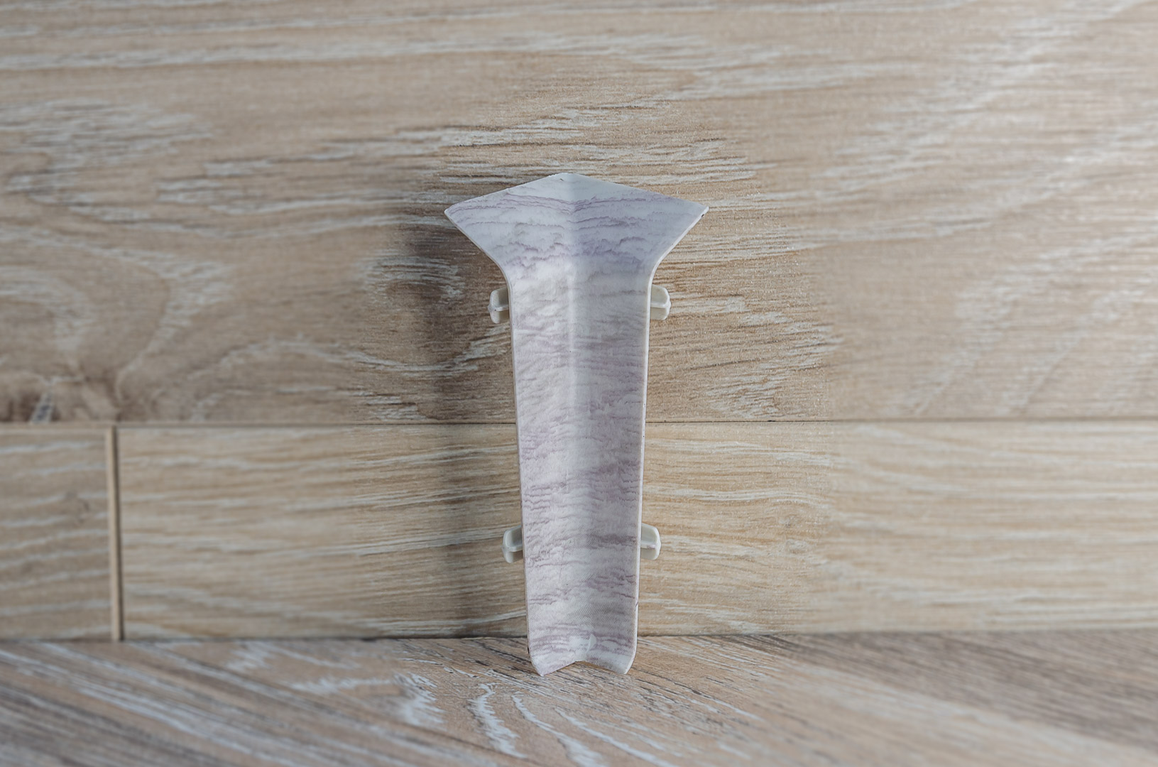 Внутренний угол для плинтуса Quadro, имитация дуба, 80 мм, крепкий пластик, комплект 2 шт., легко устанавливается, устойчив к износу и влаге.
