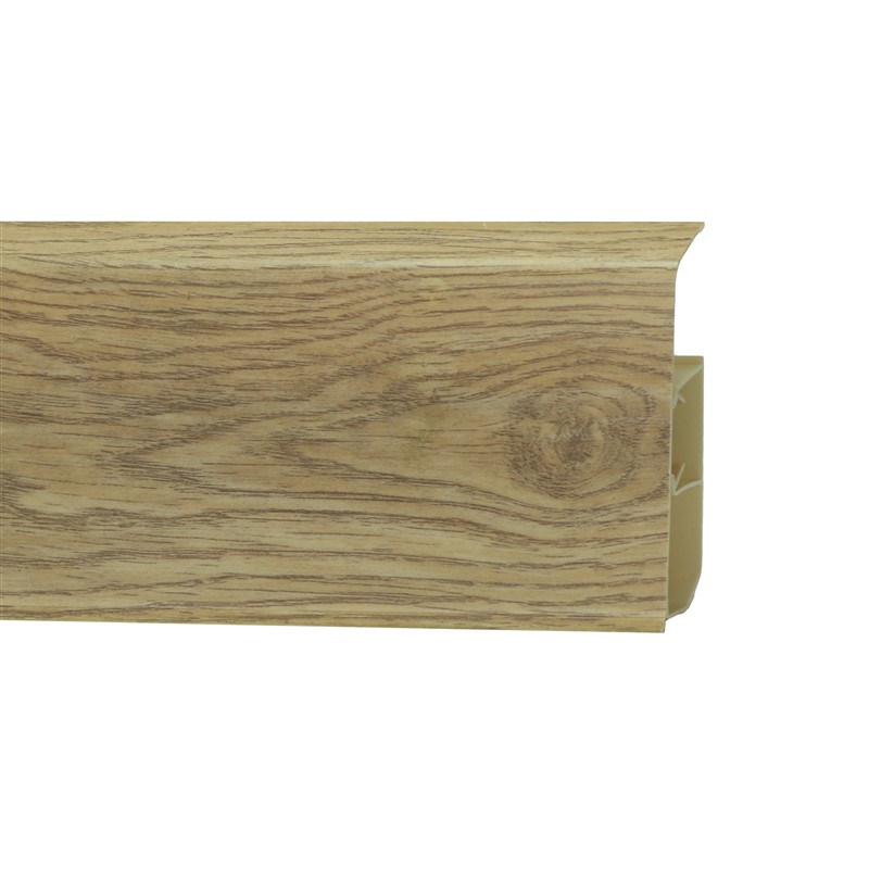 Утонченный и высокий профиль (80 мм) с острыми краями. Благодаря съёмной панели монтаж электрических проводов, покраска стен, оклеивание обоями возможны без демонтажа профилей. Конструкция позволяет монтировать и демонтировать плинтус без использования инструментов. Существует возможность размещения большого количества проводов, в том числе после монтажа. Специальная двухслойная технология: помимо слоя краски, дополнительно покрывается специальным лаком, благодаря чему его покрытие становится однородным, а это дополнительно защищает изделие от разного вида механических повреждений и вредного воздействия лучей УФ. Благодаря эластичному материалу, плинтус идеально прилегает даже к неровностям стен и полов.
