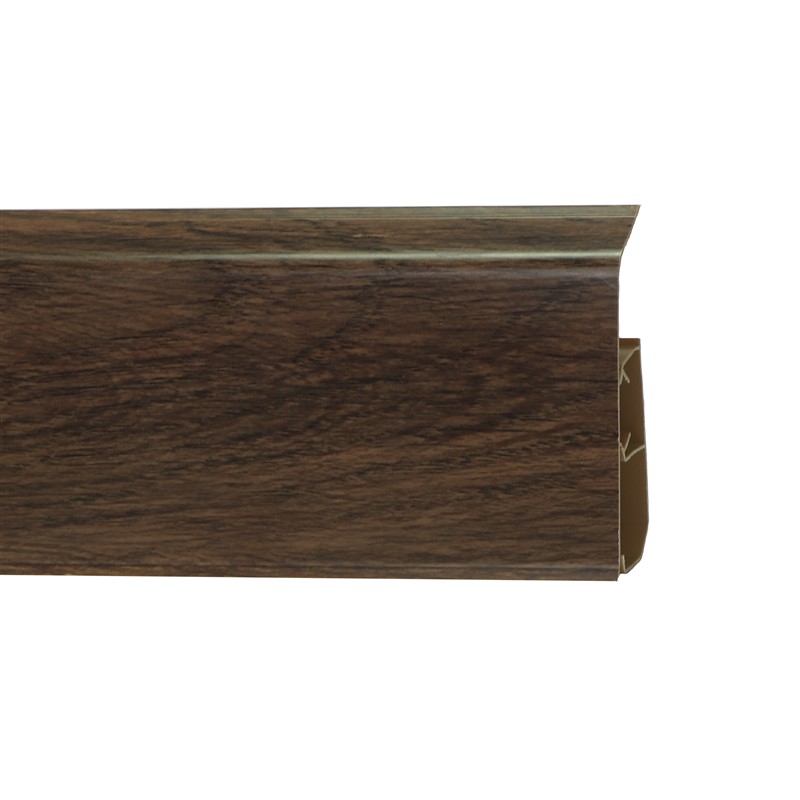 Утонченный и высокий профиль (80 мм) с острыми краями. Благодаря съёмной панели монтаж электрических проводов, покраска стен, оклеивание обоями возможны без демонтажа профилей. Конструкция позволяет монтировать и демонтировать плинтус без использования инструментов. Существует возможность размещения большого количества проводов, в том числе после монтажа. Специальная двухслойная технология: помимо слоя краски, дополнительно покрывается специальным лаком, благодаря чему его покрытие становится однородным, а это дополнительно защищает изделие от разного вида механических повреждений и вредного воздействия лучей УФ. Благодаря эластичному материалу, плинтус идеально прилегает даже к неровностям стен и полов.