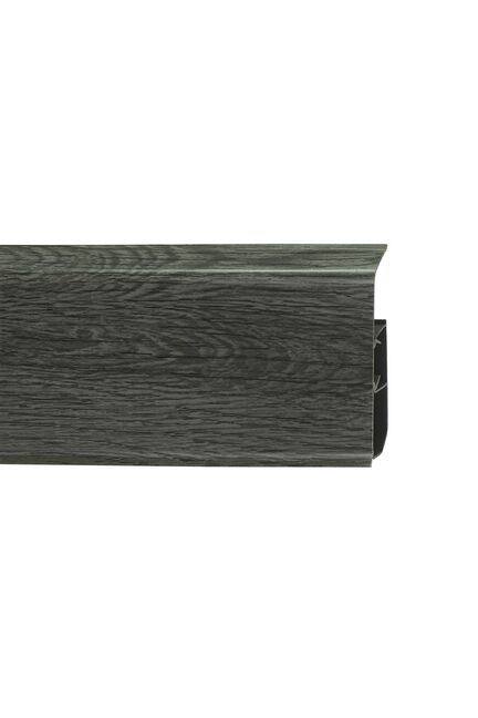 Утонченный и высокий профиль (80 мм) с острыми краями. Благодаря съёмной панели монтаж электрических проводов, покраска стен, оклеивание обоями возможны без демонтажа профилей. Конструкция позволяет монтировать и демонтировать плинтус без использования инструментов. Существует возможность размещения большого количества проводов, в том числе после монтажа. Специальная двухслойная технология: помимо слоя краски, дополнительно покрывается специальным лаком, благодаря чему его покрытие становится однородным, а это дополнительно защищает изделие от разного вида механических повреждений и вредного воздействия лучей УФ. Благодаря эластичному материалу, плинтус идеально прилегает даже к неровностям стен и полов.