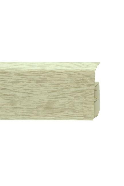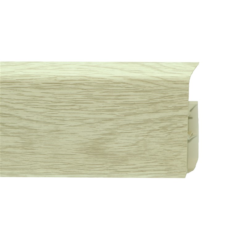 Утонченный и высокий профиль (80 мм) с острыми краями. Благодаря съёмной панели монтаж электрических проводов, покраска стен, оклеивание обоями возможны без демонтажа профилей. Конструкция позволяет монтировать и демонтировать плинтус без использования инструментов. Существует возможность размещения большого количества проводов, в том числе после монтажа. Специальная двухслойная технология: помимо слоя краски, дополнительно покрывается специальным лаком, благодаря чему его покрытие становится однородным, а это дополнительно защищает изделие от разного вида механических повреждений и вредного воздействия лучей УФ. Благодаря эластичному материалу, плинтус идеально прилегает даже к неровностям стен и полов.