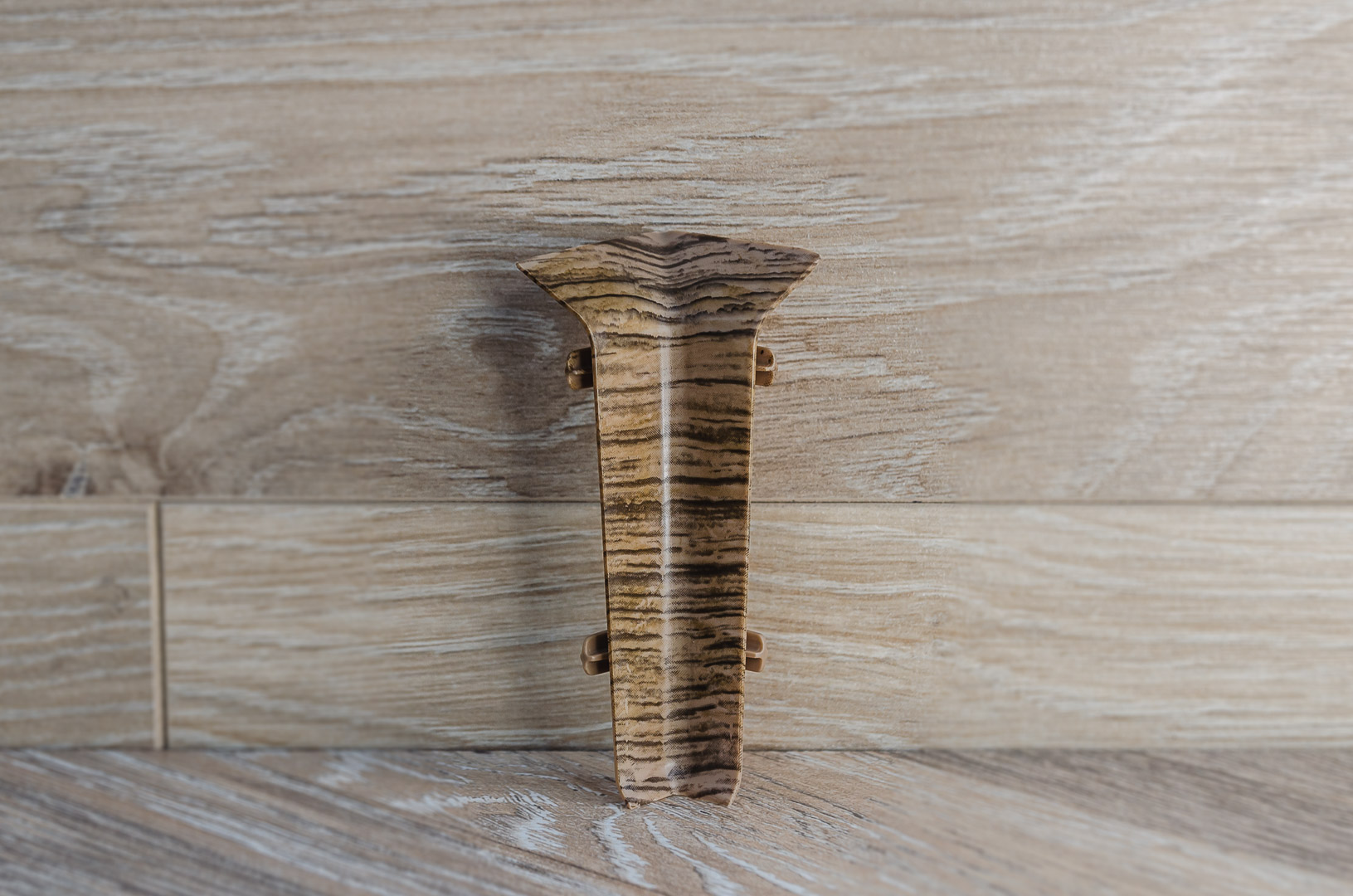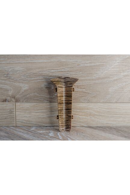 Внутренний угол 80 мм Quadro для стыковки плинтусов в оттенке "Дуб Лофт", прочный пластик, комплект 2 шт., легко монтируется и обеспечивает аккуратный угол.