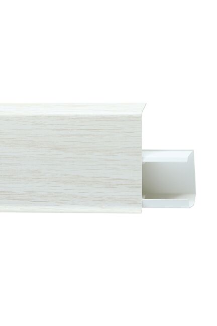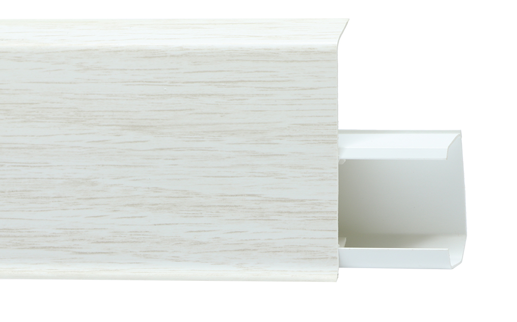 Утонченный и высокий профиль (72 мм) с острыми краями. Благодаря съёмной панели монтаж электрических проводов, покраска стен, оклеивание обоями возможны без демонтажа профилей. Конструкция позволяет монтировать и демонтировать плинтус без использования инструментов. Существует возможность размещения большого количества проводов, в том числе после монтажа. Специальная двухслойная технология: помимо слоя краски, дополнительно покрывается специальным лаком, благодаря чему его покрытие становится однородным, а это дополнительно защищает изделие от разного вида механических повреждений и вредного воздействия лучей УФ. Благодаря эластичному материалу, плинтус идеально прилегает даже к неровностям стен и полов. Стойкий к влаге внутренний угол для плинтуса 72мм, "Дуб Прованс", легко монтируется, создаёт аккуратные стыки. Подходят для любого интерьера.