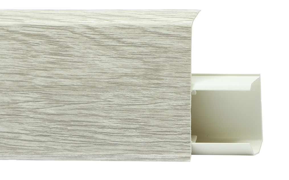 Утонченный и высокий профиль (72 мм) с острыми краями. Благодаря съёмной панели монтаж электрических проводов, покраска стен, оклеивание обоями возможны без демонтажа профилей. Конструкция позволяет монтировать и демонтировать плинтус без использования инструментов. Существует возможность размещения большого количества проводов, в том числе после монтажа. Специальная двухслойная технология: помимо слоя краски, дополнительно покрывается специальным лаком, благодаря чему его покрытие становится однородным, а это дополнительно защищает изделие от разного вида механических повреждений и вредного воздействия лучей УФ. Благодаря эластичному материалу, плинтус идеально прилегает даже к неровностям стен и полов.