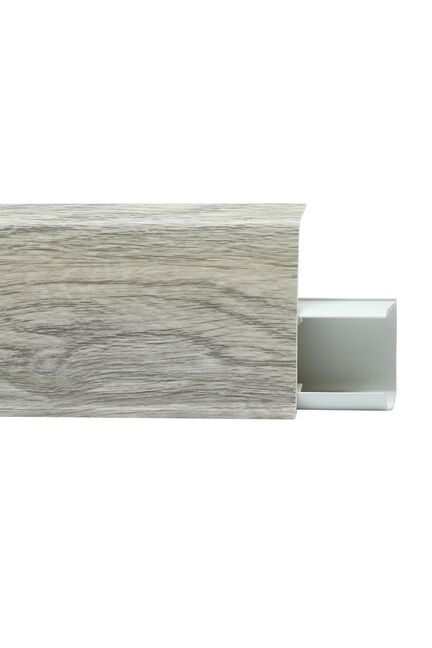 Утонченный и высокий профиль (72 мм) с острыми краями. Благодаря съёмной панели монтаж электрических проводов, покраска стен, оклеивание обоями возможны без демонтажа профилей. Конструкция позволяет монтировать и демонтировать плинтус без использования инструментов. Существует возможность размещения большого количества проводов, в том числе после монтажа. Специальная двухслойная технология: помимо слоя краски, дополнительно покрывается специальным лаком, благодаря чему его покрытие становится однородным, а это дополнительно защищает изделие от разного вида механических повреждений и вредного воздействия лучей УФ. Благодаря эластичному материалу, плинтус идеально прилегает даже к неровностям стен и полов.