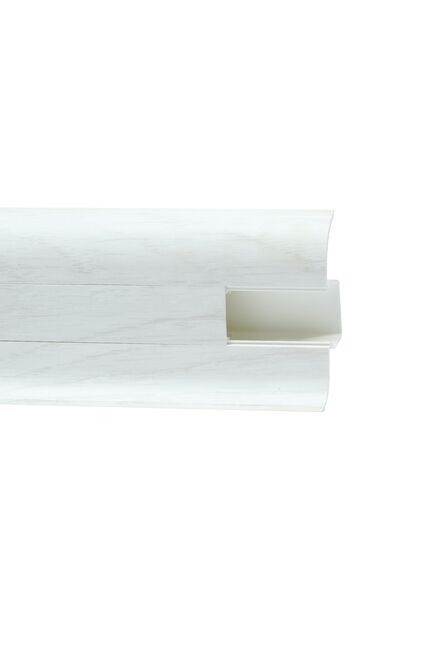 Утонченный и высокий профиль (58 мм) с острыми краями. Благодаря съёмной панели монтаж электрических проводов, покраска стен, оклеивание обоями возможны без демонтажа профилей. Конструкция позволяет монтировать и демонтировать плинтус без использования инструментов. Существует возможность размещения большого количества проводов, в том числе после монтажа. Специальная двухслойная технология: помимо слоя краски, дополнительно покрывается специальным лаком, благодаря чему его покрытие становится однородным, а это дополнительно защищает изделие от разного вида механических повреждений и вредного воздействия лучей УФ. Благодаря эластичному материалу, плинтус идеально прилегает даже к неровностям стен и полов.