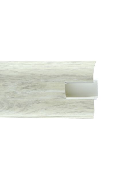Утонченный и высокий профиль (58 мм) с острыми краями. Благодаря съёмной панели монтаж электрических проводов, покраска стен, оклеивание обоями возможны без демонтажа профилей. Конструкция позволяет монтировать и демонтировать плинтус без использования инструментов. Существует возможность размещения большого количества проводов, в том числе после монтажа. Специальная двухслойная технология: помимо слоя краски, дополнительно покрывается специальным лаком, благодаря чему его покрытие становится однородным, а это дополнительно защищает изделие от разного вида механических повреждений и вредного воздействия лучей УФ. Благодаря эластичному материалу, плинтус идеально прилегает даже к неровностям стен и полов.