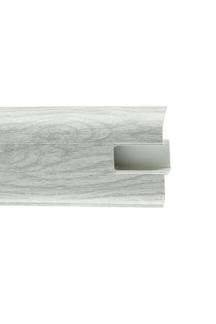 Утонченный и высокий профиль (58 мм) с острыми краями. Благодаря съёмной панели монтаж электрических проводов, покраска стен, оклеивание обоями возможны без демонтажа профилей. Конструкция позволяет монтировать и демонтировать плинтус без использования инструментов. Существует возможность размещения большого количества проводов, в том числе после монтажа. Специальная двухслойная технология: помимо слоя краски, дополнительно покрывается специальным лаком, благодаря чему его покрытие становится однородным, а это дополнительно защищает изделие от разного вида механических повреждений и вредного воздействия лучей УФ. Благодаря эластичному материалу, плинтус идеально прилегает даже к неровностям стен и полов.