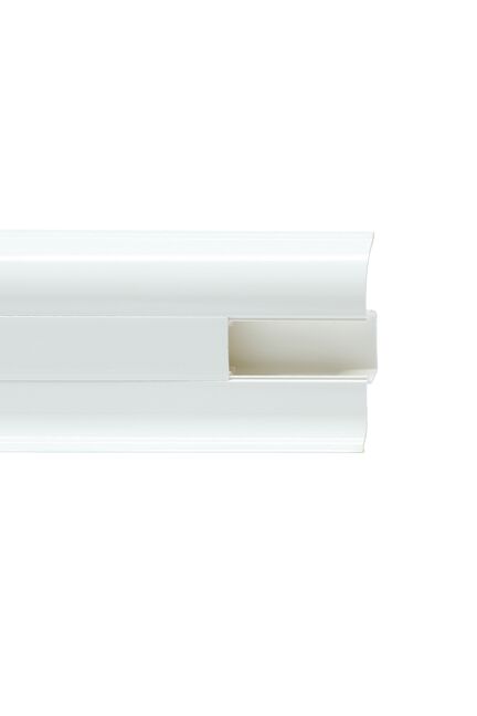 Утонченный и высокий профиль (58 мм) с острыми краями. Благодаря съёмной панели монтаж электрических проводов, покраска стен, оклеивание обоями возможны без демонтажа профилей. Конструкция позволяет монтировать и демонтировать плинтус без использования инструментов. Существует возможность размещения большого количества проводов, в том числе после монтажа. Специальная двухслойная технология: помимо слоя краски, дополнительно покрывается специальным лаком, благодаря чему его покрытие становится однородным, а это дополнительно защищает изделие от разного вида механических повреждений и вредного воздействия лучей УФ. Благодаря эластичному материалу, плинтус идеально прилегает даже к неровностям стен и полов.