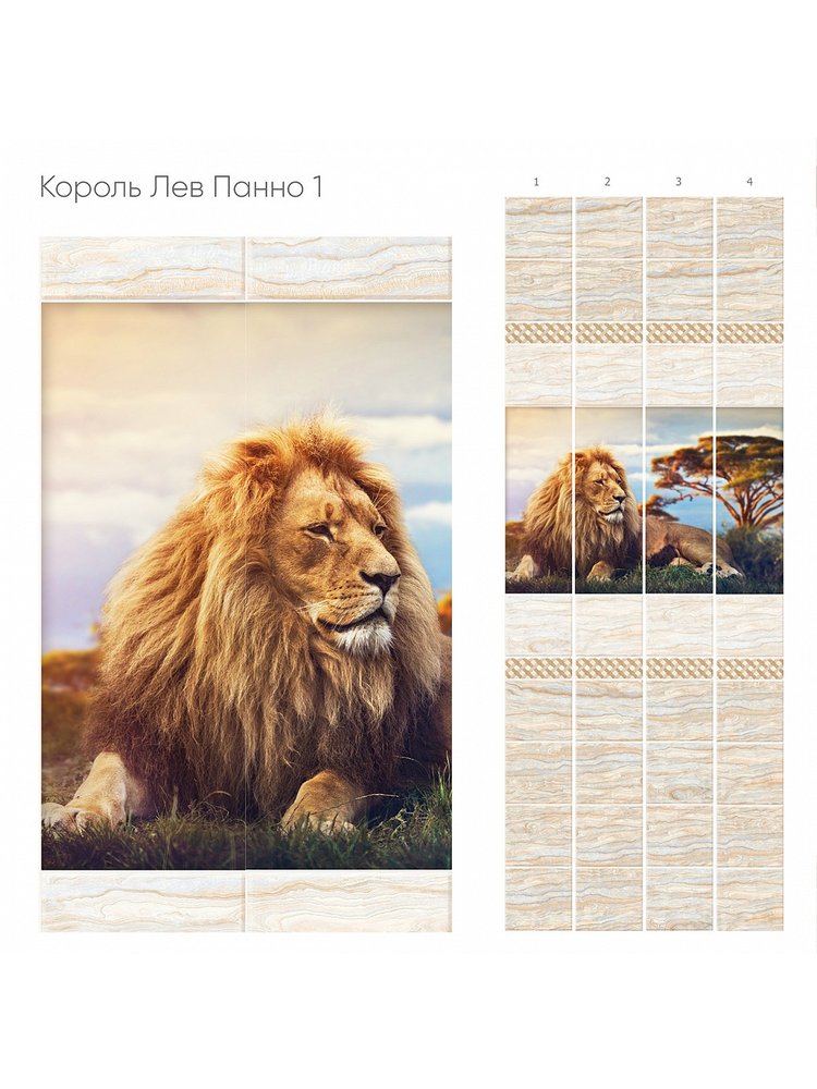 Яркая и эффектная декоративная панель с панно "Король Лев" преобразит интерьер детской комнаты, игровой зоны или образовательных и медицинских учреждений, внеся в атмосферу пространство волшебства и уюта. Монтаж прост и не требует особых навыков благодаря стандартному размеру 2,7×0,25 м и комплекту из 4 панелей.
