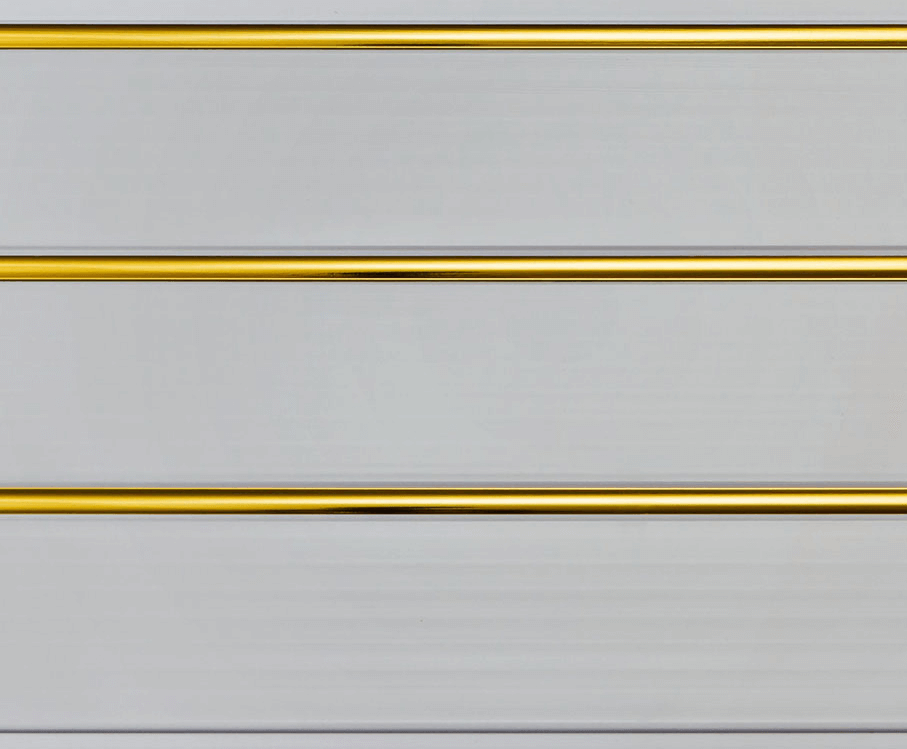 Двухсекционная влагостойкая ПВХ панель 3×0,2 м с золотыми вставками — легко монтируется, устойчива к влаге и идеально подходит для любых помещений.