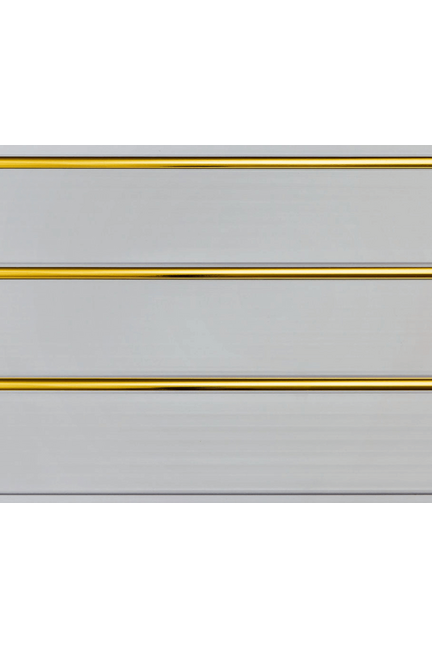 Эффектная 3-х секционная ПВХ панель — влагостойкая, прочная, легко монтируется, придает потолку элегантный золотой блеск и безупречный вид.