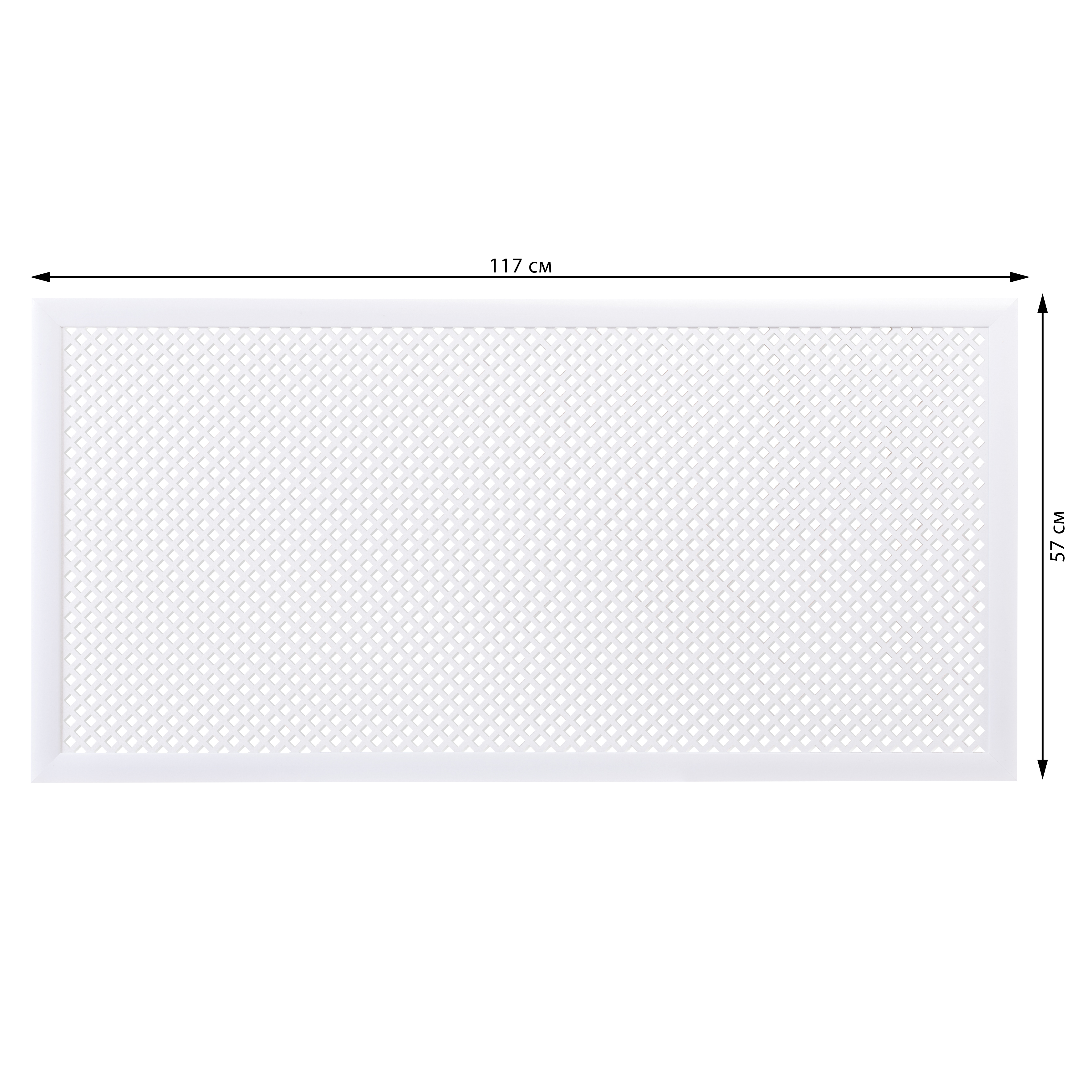 Экран 120х60 см из ДСП, белый, скрывает радиатор, защищает от ожогов и пыли, сохраняет теплоотдачу, идеально подходит для любого интерьера.