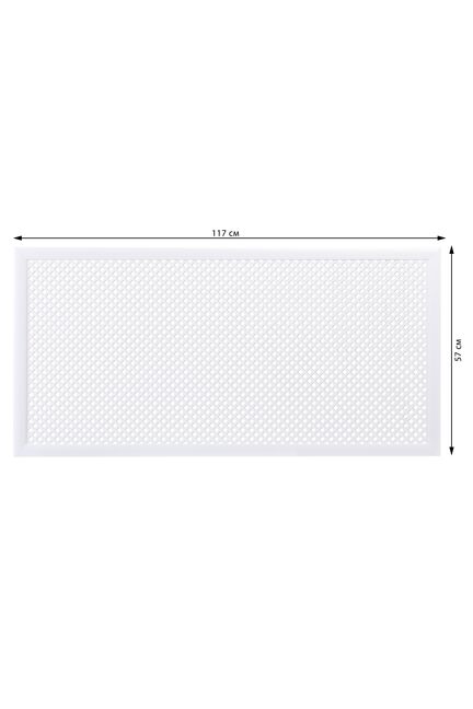 Перфорированный металлический экран 90×60 см белого цвета надежно закрывает радиатор, сохраняя теплоотдачу, легко монтируется и вписывается в интерьер.