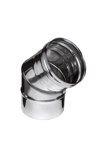 Колено из нержавеющей стали 0,5 мм, угол 135°, диаметр 115 мм – стойкость к коррозии и удобство монтажа для дымоходов и вентиляции.