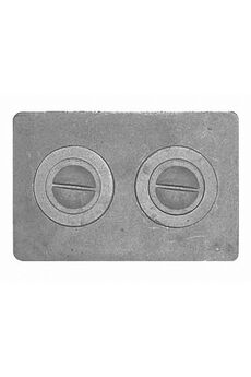 Чугунная печная плита 710×410 мм с двумя конфорками — надежна, устойчива к температуре, подходит для печей и длительного использования.