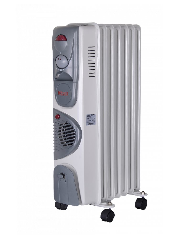Масляный радиатор РЕСАНТА ОМ-7НВ мощностью 1,9 кВт с встроенным тепловентилятором обеспечивает эффективный обогрев помещений. Оснащен 7 секциями, что позволяет равномерно распределять тепло. Имеет регулируемый термостат для настройки комфортной температуры и три режима работы. Встроенный вентилятор ускоряет процесс обогрева, создавая поток теплого воздуха. Устройство оснащено колесами для удобного перемещения и защитой от перегрева, что гарантирует безопасность использования. Компактные размеры делают его удобным для хранения.