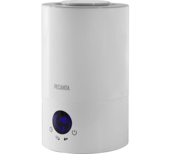 Увлажнитель воздуха Ресанта УВ-4 - прибор, предназначенный для поддержания комфортного уровня влажности в помещении. В блок прибора попадает воздух из помещения. На ультразвуковую мембрану, расположенную внутри, из резервуара для воды поступает дозированное количество воды, которая с помощью ультразвука расщепляется на мелкодисперсный холодный пар. Данный пар с помощью воздуха через сопло поступает в помещение, повышая уровень влажности.