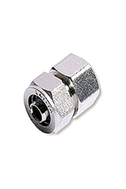 Прочная латунная муфта с никелированием для металлопластиковых труб 26×3/4". Надёжность, долговечность и герметичность соединения водопровода.