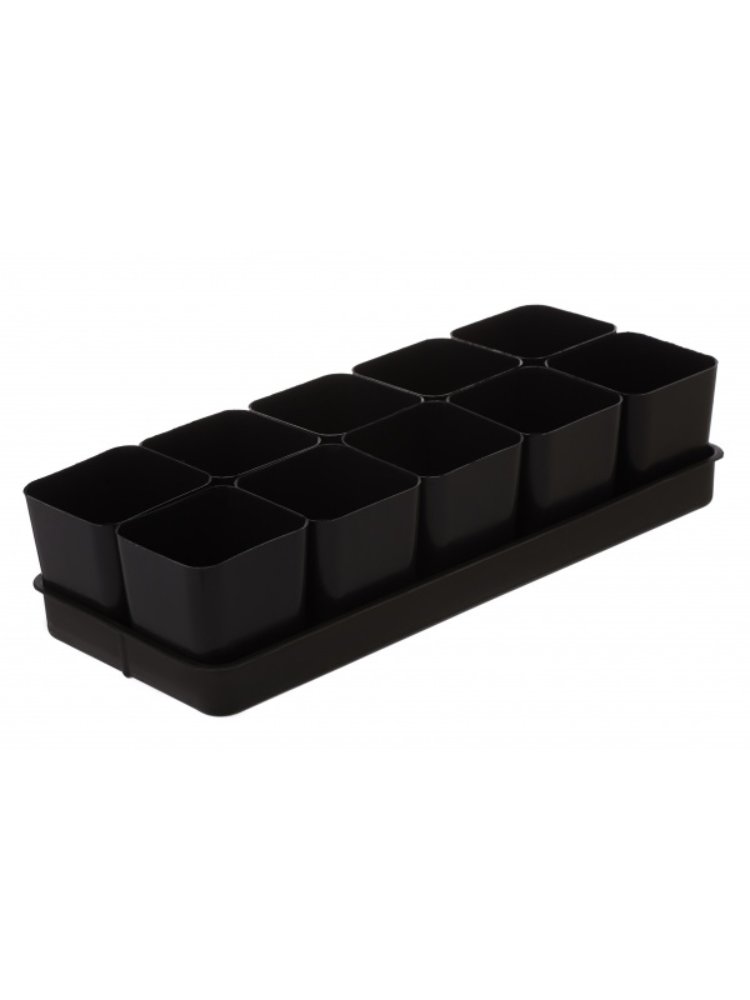 Набор из 10 прочных стаканов по 0,5 л с поддоном для рассады, устойчив к влаге, многократному использованию и лёгкой пересадке.