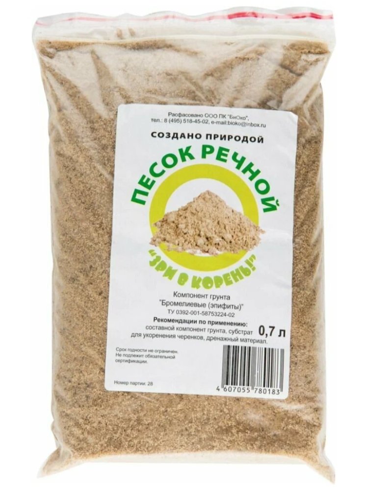 Чистый и сухой песок для строительных растворов и отделки, удобная фасовка 0,7 л, оптимальная зернистость, без примесей и пыли.