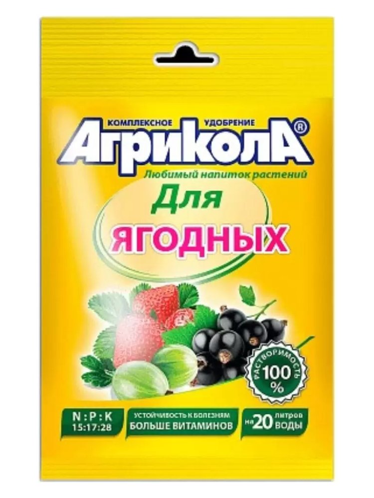 Комплексное удобрение 50 г для ягод, ускоряет рост и созревание, повышает урожайность и вкус, легко разводится, экономичный расход.