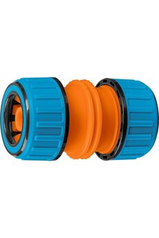 Муфта для соединения шлангов 1/2" и 3/4", прочный пластик, устойчива к коррозии, быстрое и герметичное соединение, легко устанавливается.