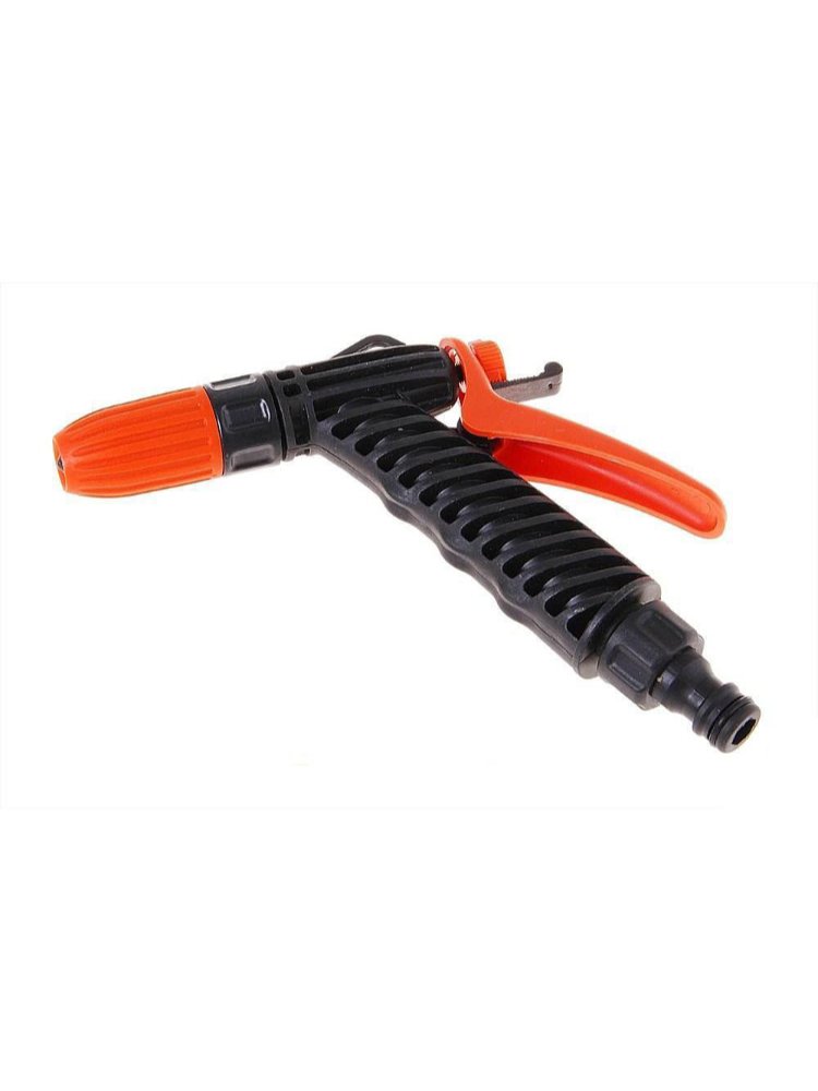 Удобный пистолет для полива с фиксатором, плавной регулировкой струи и быстрым подключением под коннектор — идеален для сада и огорода.