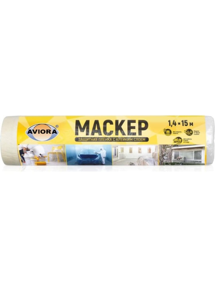 Пленка защитная, AVIORA с клейким слоем 1400мм*15м маскер Пленка с клейким слоем 1400×15м быстро защищает поверхности от пыли, краски и влаги, легко крепится и снимается без следов, устойчива к разрывам.