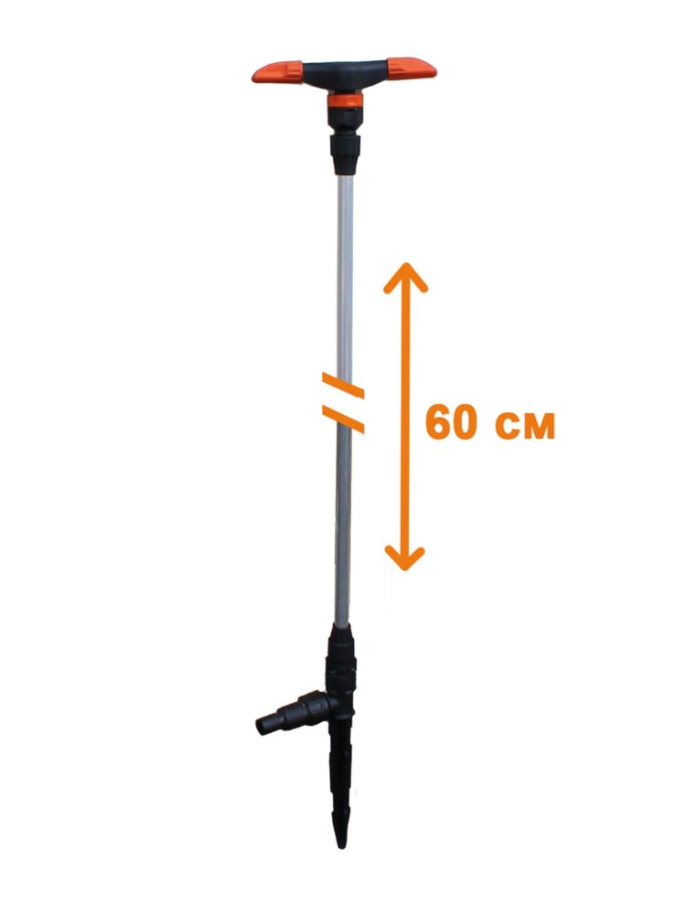 Удлиненный распылитель с трёх-лепестковым соплом, длина 60 см, подходит для шлангов 1/2" и 3/4". Равномерный полив, простая установка, надежность.