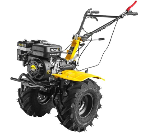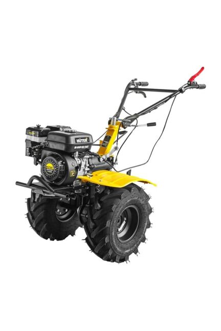 Ключевым отличием HUTER MK-8000P BF от аналогов с такой же мощностью является наличие больших колёс 19х7-8 с агрессивным протектором, которые обеспечивают хорошую проходимость. Мотоблок имеет две передачи вперёд и одну назад, что позволяет обрабатывать сложные участки почвы, включая целину, минимизировать застревания и хорошо маневрировать. Ширина обработки составляет 100 см. Глубина регулируется сошником. Диаметр фрез – 30 см.