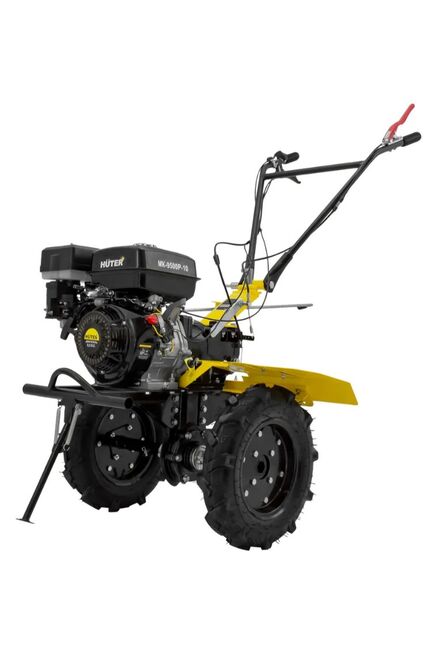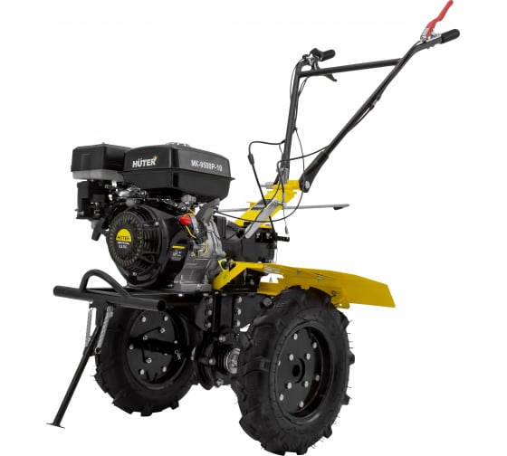 HUTER MK-9500P-10 - это модификация MK-9500P, которая отличается от базовой версии колесами увеличенного диаметра. Мотоблок приводится в действие бензиновым четырехтактным двигателем мощностью 9,5 л. с. Две передачи впереди одна назад. Машина легко справляется с обработкой разных типов грунтов, в том числе тяжелых почв, подходит для вспахивания целины.