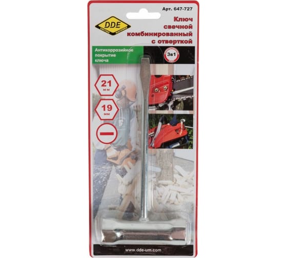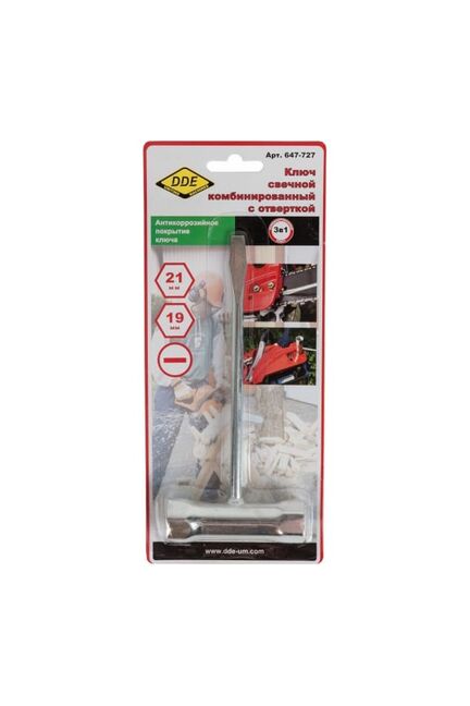 Ключ свечной комбинированный 19х21 мм DDE 647-727 предназначен для смены свечи зажигания, для затяжки гаек и винтов при натяжении или смене пильной цепи. Используется при работе с бензопилам, бензотриммерами и другими устройствами, где применяются свечи зажигания. Свечной комбинированный ключ 19x21 мм: универсален, прочен, подходит для большинства авто, обеспечивает удобный доступ к свечам зажигания.