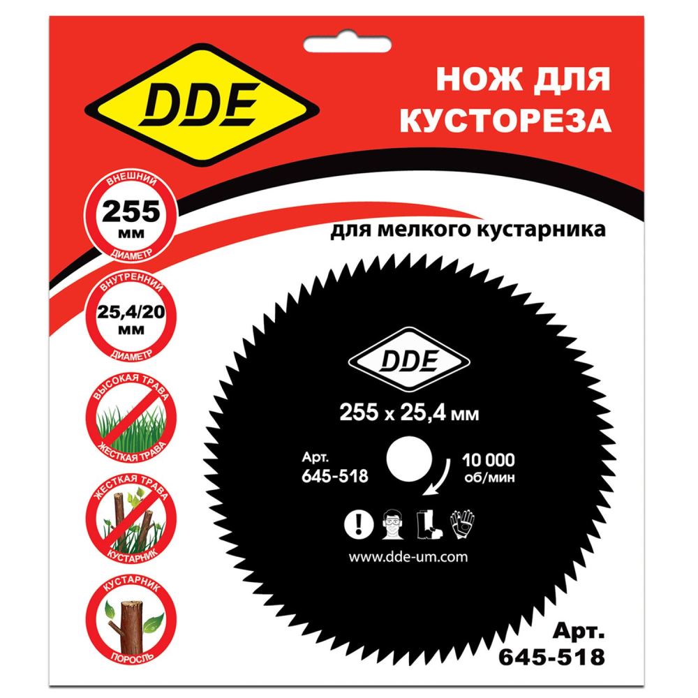 Диск для триммера DDE WOOD CUT 80 зубьев, 255 х 25,4 мм, предназначен для подрезки кустарника и деревьев до 4 см в диаметре. Изготовлен из углеродистой стали. Регулярно затачивайте нож, после заточки обязательно проверяйте балансировку ножа. Рекомендуется для бензиновых триммеров (от 50 см3). Максимальные обороты 10 000. Толщина ножа 1,4 мм. Пильный диск на 80 зубьев, 255 мм, точный чистый рез, подходит для мягкой и твёрдой древесины, повышенная износостойкость.