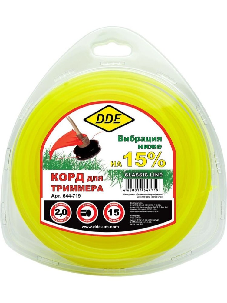 Идеальный выбор для владельцев триммеров и садовой техники — корд диаметром 2,0 мм и длиной 15 м эффективно справляется с поддержанием порядка на газонах, обочинах и в саду.