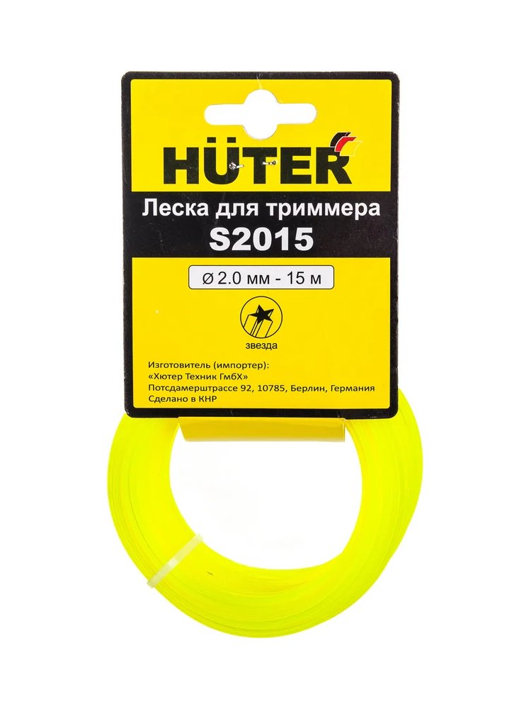 Профессиональная леска HUTER S2015 для триммеров HUTER GET-1200SL. Звёздообразная леска 2,0 мм для триммеров — прочная, эффективная, подходит для скашивания густой травы и сорняков на садовых участках.