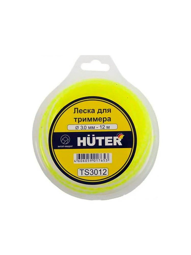 Профессиональная леска HUTER TS3012 для моделей триммеров: GGT-1900S(T), GGT-2500S(T). Витая квадратная леска 3,0 мм, 12 м: для триммеров, устойчивая к износу, обеспечивает быстрый и чистый срез даже густой травы.