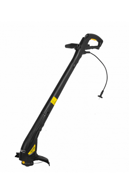 Ручной недорогой электрический триммер Huter GET-400 для кошения травы на садовом, дачном участке. Питание 220 вольт. Номинальная мощность 400 Вт. Этого вполне достаточно для кошения свежей травы на простом естественном газоне. Режущий инструмент - леска. Частота вращения - до 10000 оборотов в минуту. Ширина кошения - 240 мм. Электрокоса Хутер самая простая, и дополнительных настроек в конструкции не предусмотрено.