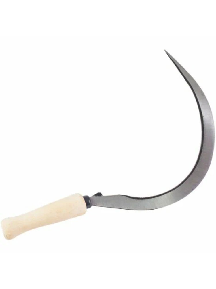 Прочный серп с зубцом для уборки травы и злаков. Удобная рукоятка, острая сталь, долговечность и комфорт в использовании.