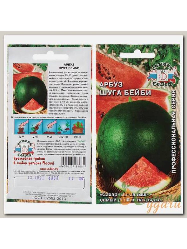 Семена арбуза сорта Шуга Бейби в упаковке 1 грамм от компании СеДеК – это раннеспелый сорт, который отличается высокой урожайностью и отличными вкусовыми качествами. Плоды округлой формы, весом 3-5 кг, с тонкой коркой и сладкой, сочной мякотью красного цвета. Растение хорошо адаптируется к различным климатическим условиям, устойчиво к заболеваниям. Идеально подходит для выращивания на дачных участках и в теплицах. Срок созревания составляет 68-75 дней от всходов до сбора урожая.