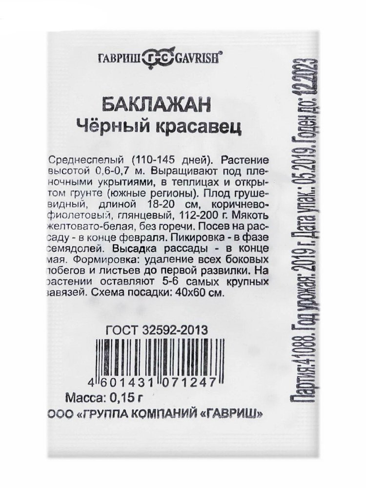 Семена Баклажан Черный красавец б/п Уд.с. Гавриш