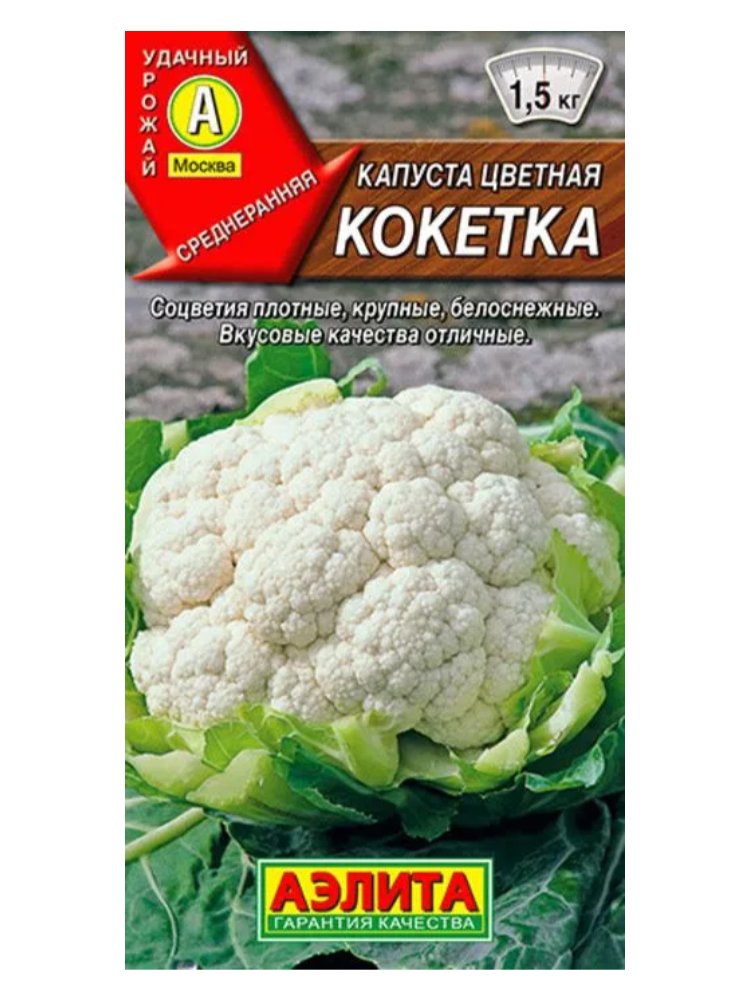 Выберите качество и отличный урожай — капуста цветная "Кокетка" прекрасно подходит для выращивания на приусадебных участках, в теплицах или огородах. Этот сорт порадует высокой урожайностью, устойчивостью к перепадам температуры и отличным вкусом – идеальное решение для домашних заготовок и свежих салатов!
